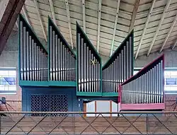 III/P 12 (27) Bis 2016 waren nur 12 von 27 geplanten Registern fertiggestellt (Brustwerk und Rückpositiv waren vakant). 2016 Erweiterung der Orgel und Vervollständigung der fehlenden Register durch Orgelbau Bosch (III/P/28).