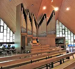III/P 40 Umbau der 1953 gebauten Orgel. Umsetzung in das südliche Seitenschiff, neues Gehäuse von Dieter Oesterlen; 1984 überholt durch Karl Schuke Berliner Orgelbauwerkstatt