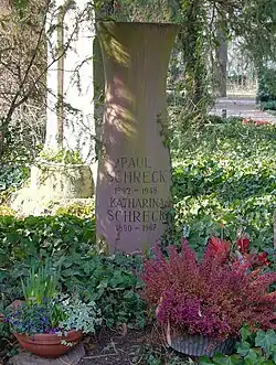 Heute erinnert der Paul-Schreck-Platz in Mannheim an Schrecks politische Tätigkeit. Das Grab auf dem Hauptfriedhof Mannheim besteht aus einer hochaufragenden, schlichten Scheinvase aus rotem Mainsandstein.[2]