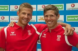 ![]() Paul Sieber (rechts) mit seinem Bruder Bernhard bei der Olympiaeinkleidung 2016 | |||||||||||||
