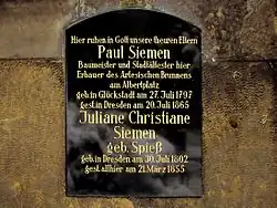 Siemen starb 1865 in Dresden. Sein Grab befindet sich auf dem Inneren Neustädter Friedhof.