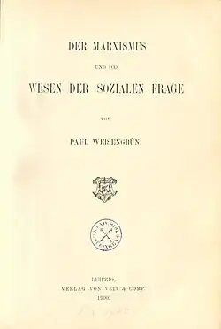 Laut Weisengrün (1899, 1900, 1914) habe der Marxismus, bei allen historischen Verdiensten, sich überlebt und hindere das Proletariat, die Lage richtig einzuschätzen.[1]
