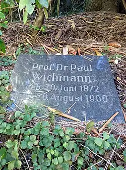 Auf dem Ohlsdorfer Friedhof in Hamburg befindet sich im Planquadrat W 24 östlich von Kapelle 2 die Grabstätte Schneider-Sievers/Wichmann mit Kissenstein für Paul Wichmann.