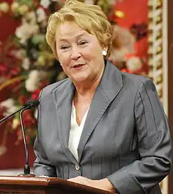 Mit 54 von 125 Sitzen verfügte die Parti Québecois nicht über die angestrebte absolute Mehrheit. Marois bildete am 19. September 2012 eine Minderheitsregierung, die auf die Unterstützung der Liberalen und der konservativen Coalition Avenir Québec angewiesen war. Als erste Maßnahme machte sie die von der Vorgängerregierung beschlossene Erhöhung der Studiengebühren rückgängig, die zu monatelangen Studentenprotesten geführt hatte.[16] Im September 2013 kündigte sie ein Gesetzesvorhaben zur Einführung einer „Charta der Werte“ an. Heftige Kontroversen verursachte vor allem die geplante Regelung, dass Angestellte im öffentlichen Dienst keinerlei auffällige religiöse Symbole (z. B. Kippot, Turbane, Hidschabs, Niqabs, große Kreuze) tragen oder ihr Gesicht verdecken dürften.[17] Die Charta stieß bei Oppositionsparteien, Vertretern religiöser Minderheiten und Menschenrechtsorganisationen auf Ablehnung.