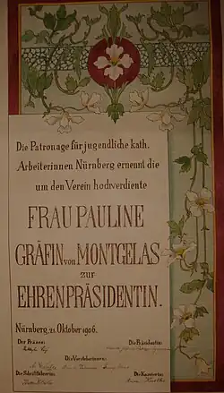 Pauline Gräfin von Montgelas (geboren als Pauline Mathilde Sophie Gräfin von Wimpffen; ausgesprochen ; * 28. Februar 1874 in Rom; † 10. Mai 1961 in Rottach-Egern) war im Deutschen Katholischen Frauenbund tätig und setzte sich für Verbesserungen der Arbeitsbedingungen von Dienstmädchen, Heimarbeiterinnen und Kellnerinnen ein.