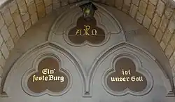 Im Tympanon des Hauptportals findet sich ein Zitat Martin Luthers: „Ein feste Burg ist unser Gott“. Die Kirchenfenster stellen in einem Bilderzyklus Geschichten aus der Bibel und der Pauluskirche dar. Die Orgel wurde 1997 von der Orgelbauwerkstatt Orgelbau Mühleisen erbaut und verfügt über 30 Register, verteilt auf drei Manualen und Pedal.[1] Das Geläut besteht aus sechs Glocken der Gießerei Albert Junker: