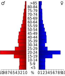 19,6 Prozent der Bevölkerung waren unter 18 Jahre alt, 25,9 Prozent zwischen 18 und 24, 26,2 Prozent zwischen 25 und 44, 17,6 Prozent zwischen 45 und 64 und 10,8 Prozent waren 65 Jahre oder älter. Das Durchschnittsalter betrug 28 Jahre. Auf 100 weibliche Personen kamen 103,3 männliche Personen. Auf 100 Frauen im Alter von 18 Jahren oder darüber kamen 102,6 Männer.