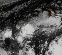 Das tropische Tief Fünf-C bildete sich am 2. Dezember, zwei Tage nach dem offiziellen Ende der Hurrikansaison. Es war das zweite tropische Tief überhaupt, das sich im Pazifik östlich der Datumsgrenze in einem Dezember gebildet hatte (Der andere Fall war Hurrikan Winnie 1983). Die Formation verstärkte sich westlich des Palmyra-Atolls und wurde Paka genannt (hawaiisch für Pat). Das System begann, in Richtung Westen zu ziehen.[31] Trockene Winde und Windscherungen störten seine Entwicklung bis jenseits der Datumsgrenze am 6. Dezember.[11]