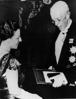 - ↑ Lexikonredaktion des Verlages F.A.Brockhaus (Hrsg.): Nobelpreise. Chronik herausragender Leistungen. Mannheim 2001, ISBN 3-7653-0491-3, S. 374.