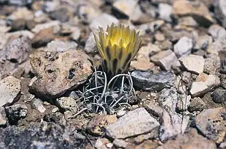 - ↑ The Cacti of Arizona ed 3: 24, 186, 187. 1969 nom. ill. (Art. 53.1) a later homonym of Pediocactus peeblesianus var. fickeiseniorum (Backeb.) L.D.Benson (1962). Type: USA, Arizona, Coconino County, w of Cameron, watershed of the Little Colorado River; 28 jun 1957, Lyman & Robert Benson 15745 (POM 285856) & 21 Apr 1961, Lyman & Evelyn L. Benson 16086 (POM 299969).