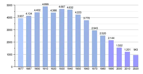 Im 19. Jahrhundert hatte die Gemeinde konstant über 4.000 Einwohner. Die Mechanisierung der Landwirtschaft und der damit verbundene Verlust von Arbeitsplätzen führten seitdem zu einem noch immer anhaltenden Bevölkerungsrückgang.
