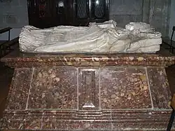Am Montag, dem 10. November 1567, verstarb Pedro de la Gasca im Alter von 74 Jahren in seiner Residenz, dem Castillo de los Obispos de Sigüenza. Er wurde in der Kirche der hl. Magdalena in Valladolid beigesetzt. Bereits seit dem Jahr 1563 hatte Pedro de la Gasca diese Kirche als seine Grabkirche vorgesehen. Er ließ das beschädigte Gebäude restaurieren und stellte Mittel für den Unterhalt des Priesters, des Sakristans und der Kapläne bereit.[30] Sein Grabdenkmal wurde von Esteban Jordán geschaffen, von dem auch der Hauptaltar der Kirche gestaltet wurde.[31]