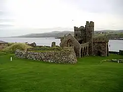 Die Burg wurde im 11. Jahrhundert von den Wikingern unter der Herrschaft von König Magnus III. von Norwegen gebaut. Es gab zwar ältere klösterliche Steinbauten der Kelten auf der Insel, aber die ersten Befestigungen der Wikinger waren aus Holz. Der gut sichtbare Rundturm war ursprünglich Teil eines keltischen Klosters, erhielt aber später Zinnen. Anfang des 14. Jahrhunderts wurden die meisten Türme und Mauern hauptsächlich aus dem roten Sandstein errichtet, der sich in großer Menge in der Gegend findet. Nach dem Ende der Wikingerherrschaft nutzte die Kirche die Burg weiterhin, da dort eine Kathedrale stand – der Bischofssitz der Diözese Sodor und Man –, sie wurde aber im 18. Jahrhundert aufgegeben.