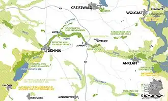 | Kleinstädte | Teterow (Kleine Peene), Malchin (West- und Ost-Peene), Neukalen (Teterower Peene), Demmin, Loitz, Jarmen, Gützkow, Anklam | |