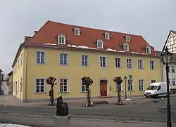 In diesem 1655/1656 von Martin Schirmer (1611–1661) errichteten Gebäude befand sich bis 1661 die Verwaltung des Amtes Pegau. Im zweiten Drittel des 19. Jahrhunderts besaß mit Gustav Ferdinand Grimmer (1803–1855) einer der bedeutendsten Bürger der Stadt dieses Anwesen. Grimmer war Gründer eines Landwirtschaftsvereins, des Gewerbevereins, er rief eine Kinderbewahranstalt und eine Näh- und Strickschule ins Leben und setzte sich für den Anschluss Pegaus an das entstehende Eisenbahnnetz ein, weiters etablierte er als erster das Zigarrenmacherhandwerk in Sachsen. Von 1868 bis 1880 befand sich hier die Pegauer Postexpedition. Der an einem Wirtschaftsgebäude im Hof befindliche „Laubengang“ ist eines der letzten erhalten gebliebenen Baudenkmäler seiner Art in der Stadt. Einzigartig in Pegau sind auch die erhaltene kassettierte Stuckdecke im Erdgeschoss und die Deckenmalerei aus der Renaissance in der Tordurchfahrt.