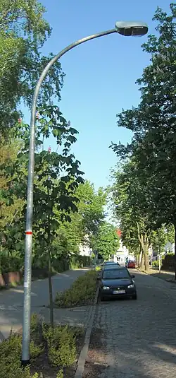 Beispiel einer Peitschenleuchte, man erkennt Verkehrszeichen 394 für die Halbnachtschaltung.