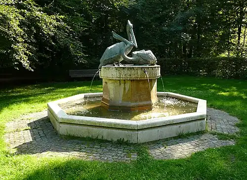 - ↑ Rainer Ertel, Ernst-Friedrich Roesener: Vom Götterboten zum Pelikan, in dies.: Hannoversches Brunnenbuch. Wasserspiele und Brunnen in Hannover. Exemplarisches und Dokumentarisches, Hannover: Fackelträger-Verlag, 1988, ISBN 3-7716-1497-X, S. 66ff., 100