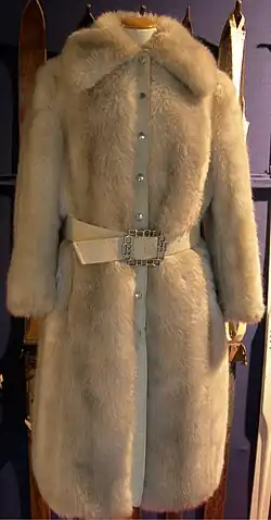Zu Accessoires aus Pelz gehören unter anderem Pelzkolliers, Muffe, Pelzhandschuhe, Pelzstolen und Boas sowie Pelzhüte, Pelzstiefel und Pelztaschen. Unterbekleidung und Leibwärmer, heute vor allem aus elastischen natürlichen Fasern wie Angorawolle, wurden bis in die 1970er-Jahre auch aus Katzenfellen hergestellt. Aus pelzbesetzter Überbekleidung wie Schauben und Gollern von Amts- und Würdenträgern entwickelten sich noch heute getragene Amtstrachten und Mantelmoden.[26] Die schweren Chauffeur- und Fahrermäntel der 1920er Jahre wurden zum Statussymbol bei Collegestudenten.