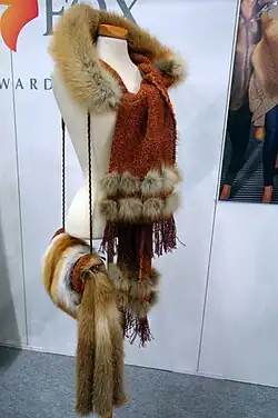 - ↑ a b Alexander Tuma: Pelz-Lexikon. Pelz- und Rauhwarenkunde, Band XX. Alexander Tuma, Wien 1950, Stichworte „Pelzgarnitur“, „Pelzfäustlinge“, „Pelzhut“, „Pelzschuhe“, „Pelztaschen“, „Pelzumhang“.