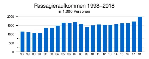 | Jahr | Fluggastaufkommen | Luftfracht (Tonnen) (mit Luftpost) |