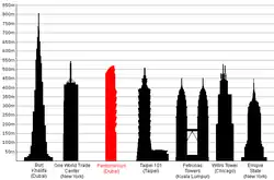 - Grafik: Größenvergleich der Gebäude in Dubai: Tallest buildings in Dubai bei SkyscraperPage