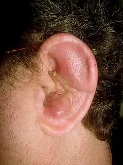 - ↑ Hanif u. a.: Lesson of the week: "High" ear piercing and the rising incidence of perichondritis of the pinna. In: BMJ. 2001;322, S. 906–907. PMID 11302908 Volltext