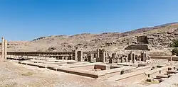 Als man die frühere Residenz von Pasargadae um 50 km hierher verlegte, wurde am Fuße des Berges Kuh-e Mehr,[1] oder auch Kuh-e Rahmat (mit derselben Bedeutung[2] aus dem Arabischen), eine 15 ha große Terrasse angelegt. Über 14 Gebäude sind auf der Plattform unter Dareios I. und seinen Nachfolgern, u. a. Xerxes I., Artaxerxes I. und Artaxerxes II. errichtet worden. Weitere Paläste wurden unmittelbar am Fuß der Terrasse ausgegraben. Die Palaststadt wurde 330 v. Chr. durch Alexander den Großen zerstört, aber ihre (teils wiederaufgebauten) Reste können auch heute noch besichtigt werden. Da bei der Zerstörung die Bewässerungsanlagen ebenfalls vernichtet worden waren, wurden die Gebäude weitgehend vom Wüstensand bedeckt und dadurch konserviert. Sie zählen zum UNESCO-Welterbe[3] und sind rund 60 km nordöstlich der Großstadt Schiras auf der Hochebene nahe der Stadt Marvdascht in der Provinz Fars (900 km südlich von Teheran) zu besichtigen.