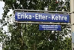 • Erika Etter (22. September 1922 bis 21. April 1945), geborene Schulz, Tochter von Adolf und Charlotte Schulz, ermordet bei einem Verbrechen der Endphase im KZ Neuengamme. Sie wurde am 17. Mai 1944 nach dem Einsatz des Provokateurs Herbert Lübbers verhaftet.[4][5]