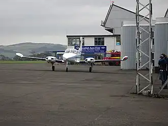 Der Flugplatz wurde 1936 als Scone Aerodrome eröffnet. Eine Flugschule, die Militärpiloten ausbildet, wurde von der Airwork Ltd. kurz nach der Eröffnung des Flugplatzes eröffnet. Vor dem Krieg wurden Linienflüge von Perth zu verschiedenen Standorten angeboten. Während des Krieges nutzten das 309 und 666 Geschwader der Royal Air Force den Flugplatz. Nach dem Krieg begann Airwork die zivile Pilotenausbildung.
