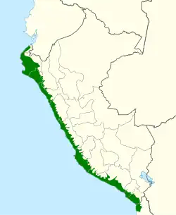 Diese Art wurde bisher in San Damián-Berna Puquio (im Distrikt Coris) in der Region Ancash, in Mejía in der Region Arequipa, auf den Inseln Islas Chao und Isla Corcovado und in den Flusstälern von Rio Lluta und Río San José de Azapa beobachtet.