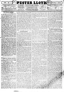 Der Pester Lloyd war eine deutschsprachige Tageszeitung und spätere Onlinezeitung aus Budapest in Ungarn. Die Zeitung erschien von 1854 bis 1945 zweimal am Tag als Morgen- und Abendblatt.