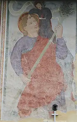 1993 wurde an der Südwand ein Christophorusfresko von 1439, ein gotischer Feiertagschristus und zwei Sonnenuhren freigelegt.