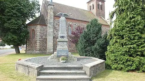 Unmittelbar neben der Kirche befindet sich ein Gefallenendenkmal für die im Ersten und Zweiten Weltkrieg gefallenen Dorfbewohner. Das Denkmal besteht aus einer auf einem dreistufigen Sockel befindlichen Stele mit bekrönendem Adler. An den Seiten sind die Namen der Gefallenen eingelassen.