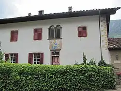 - Pietà zwischen Florian und Johannes Evangelist, über dem Eingang des denkmalgeschützten Wohnhauses Steinhuber in Algund[5]