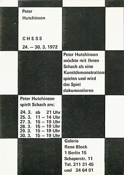 - 1972 CHESS, Hutchinson spielt mit den Besuchern Schach. Aktion in der Galerie René Block, Berlin