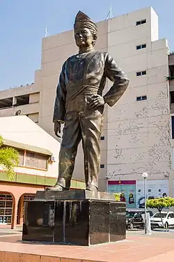 An Peter Mojuntin und sein Leben erinnert eine überlebensgroße Statue in Donggongon im Distrikt Penampang.