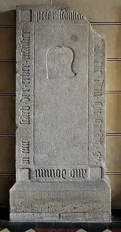 In der Turmhalle der Uracher Stiftskirche St. Amandus steht ein Epitaph des am 16. November 1501 verstorbenen Baumeisters. Die Leerstelle beim Todesdatum (MCCCCC_) legt die Vermutung nahe, dass er das Epitaph selbst gestaltet hat und die Ergänzung der fehlenden 1 nach seinem Ableben vergessen wurde. Die teils beschädigte Inschrift lautet „an[n]o domini m ccccc … starb der erber maister peter stainme[cz] [v]on koblencz dem got gnedig sy“. Das zentrale Feld des kopfüber aufgestellten Epitaphs zeigt nur noch die eingetieften Konturen seines Wappenschildes.
