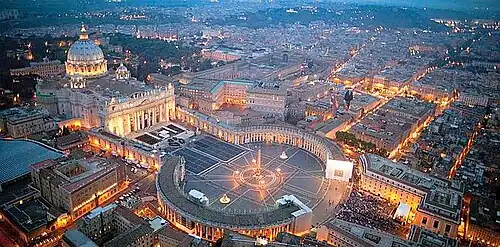 - ↑ Gerhard Wiedmann: Der Petersdom, der Petersplatz und Berninis Kolonnaden. In: Fabbrica di San Pietro (Hrsg.): Der Vatikan. Architektur – Kunst – Zeremoniell. 2014, S. 58.