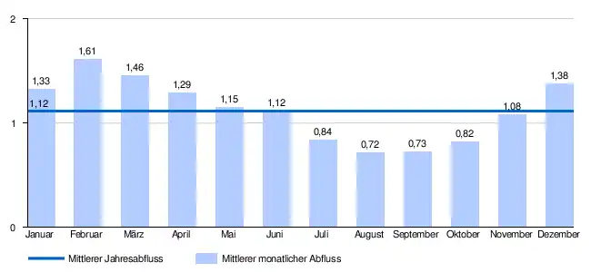 - ↑ Martin Pfaundler, Rolf Weingartner, Robert Diezig: „Versteckt hinter den Mittelwerten“ – die Variabilität des Abflussregimes. In: Hydrologie und Wasserbewirtschaftung (HyWa). Jg. 50, Heft 3, 2006, S. 116–123, hier Tabelle auf S. 119 (Download [PDF; 3,2 MB; abgerufen am 3. November 2024]). Abrufbar unter Gesamtes HyWa Heft 3, 2006..