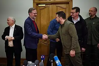 - ↑ Regierungschefs von Tschechien, Polen und Slowenien reisen nach Kiew. In: tagesschau.de vom 15. März 2021. Abgerufen am 16. März 2022.