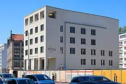Der fünfetagige Neubau ist weiß abgeputzt, mit einem vierachsigen Risaliten versehen und mittels eines Flachdaches abgeschlossen. Der Zugang ist barrierefrei.[16]
