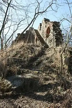 - Burgruine Petršpurk (Petersburg), 1358 durch Peter von Vrtba errichtet, seit 1556 wüst