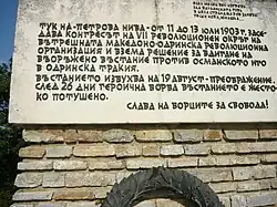 Im Laufe des Ilinden-Preobraschenie-Aufstandes, der von der Geheime Makedonisch-Adrianopeler Revolutionäre Organisation (TMORO)[2] gegen das Osmanische Reich vorbereitet wurde, fand hier zwischen 11. und 13. Juli 1903 ein Kongress der Delegierten der „7. revolutionären Region“ statt.[1] Am Kongress nahmen 300 Kämpfer und Mitglieder der Organisation teil. Ziel des Aufstandes war es, so viel wie möglich bulgarische Gebiete zu befreien, um sie zu einem späteren Zeitpunkt, mit Zustimmung der Großmächte, mit dem Fürstentum Bulgarien zu vereinen, sowie den Aufständischen in Westthrakien und Makedonien zu helfen.[1]