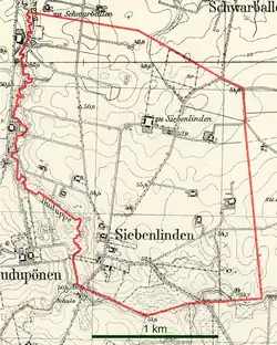 Die Gemeinde Siebenlinden auf einem Messtischblatt von 1933