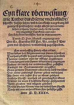 - Eyn klare vberweisung wie Luther durch seyne vnchristliche schrifft falsche lehre vnd ... (1536)