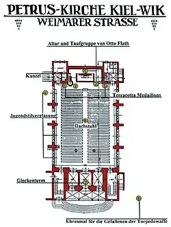 ![]() Frontansicht der Petrus-Kirche Kiel-Wik | |