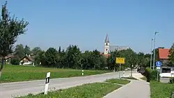 Die ursprünglich spätgotische Kirche mit ihrem teilweise romanischen Turm und Netzgewölbe ist Johannes dem Täufer geweiht. Sie wurde erstmals um die Wende des 15. Jahrhunderts erwähnt. Die erste gotische Einrichtung ist verschwunden, von der späteren Barockeinrichtung stehen heute nur noch drei Statuen: der hl. Rupertus mit dem Salzfass, der hl. Virgilius mit dem Salzburger Dom, und die hl. Maria. Im 19. Jahrhundert wurde die Kirche neugotisch ausgestattet.