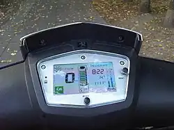 Für den Vortrieb sorgt ein luftgekühlter Elektromotor, der maximal 4 kW kurzzeitige Spitzenleistung abgibt.[1][2] Als Energiespeicher dienen zwei Lithium-Ionen-Traktionsbatterieeinheiten der Firma Saft mit einer Ladekapazität von zusammengenommen 2 kWh.[2] Aufgeladen wird der Elektroroller (an einer gewöhnlichen 230 V Steckdose)[2] über ein Spiral-Ladekabel, das unter der Sitzbank verstaut ist. Der Vorgang dauert um die vier bis fünf Stunden, wobei nach den ersten zwei bis drei Stunden bereits 80 Prozent der Ladekapazität erreicht werden. Die Lithium-Ionen-Traktionsbatterien vertragen mindestens 1 000 Ladezyklen.[3][1] Sie sind für eine Funktionsdauer von 40 000 km ausgelegt.[4] Ein Batterie-Management-System ist integriert. Das Display im Cockpit zeigt stets die Batteriekapazität oder den Akku-Ladezustand an. Das erste rote Segment zeigt einen kritischen Ladezustand an. Die orangefarbenen Segmente 2 und 3 geben einen Ladezustand unter 30 Prozent an. Die darüber liegenden Segmente befinden sich im grünen Bereich. Auch die verbleibende Reichweite in Kilometern ist ablesbar.[4][3]
