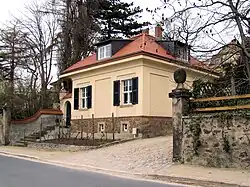 Die eingeschossige, mit Torhaus (Nr. 16), Toranlage und Einfriedung unter Denkmalschutz[4] stehende Villa liegt tief im Grundstück auf einem ehemaligen Weinbergshang. Der reich gegliederte Putzbau wird durch Stuckdekor verziert, die Fenster werden durch Sandsteingewände eingefasst.