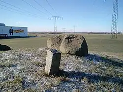 Ein Steinhaufen auf einem Hügel und eine Informationstafel nördlich des Gewerbegebietes erinnert an den geschichtsträchtigen Ort.